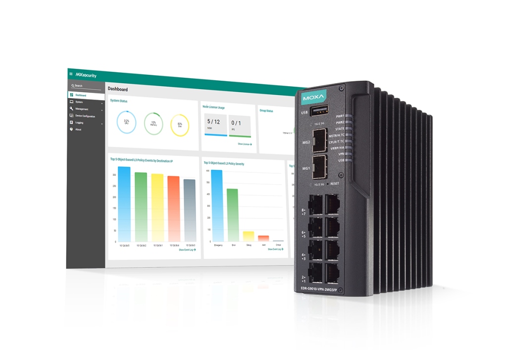 日本・東京、2022年10月13日 – Moxaは本日、オールインワンセキュアルータ「EDR-G9010シリーズ」に産業用侵入検知/防止システム(IDS/IPS)を搭載した新モデルと併せて、産業用セキュリティ管理ソフトウェア「MXsecurity」を発表し、高度なサイバーセキュリティと専用の管理ソリューションを備えた製品のポートフォリオを拡大しました。
