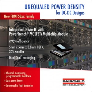 このような課題を解決するためフェアチャイルドセミコンダクタージャパン㈱(本社:東京都渋谷区)は、MOSFETとドライバーを統合した超小型、次世代パワーステージソリューション、スマートパワーステージ(SPS)モジュールファミリーを発表しました。この製品ファミリーはフェアチャイルドのDrMOS技術を活用し、高性能コンピューティング機器および通信機器向け降圧同期整流DC-DCコンバーター等のアプリケーションにおいて、高効率、高電力密度、そして高スイッチング周波数を提供します。