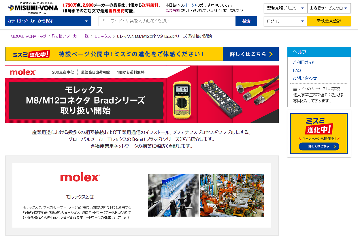 日本モレックス、FAネットワーク向け「Brad製品」の当日出荷サービスで通販大手のミスミとコラボレーション