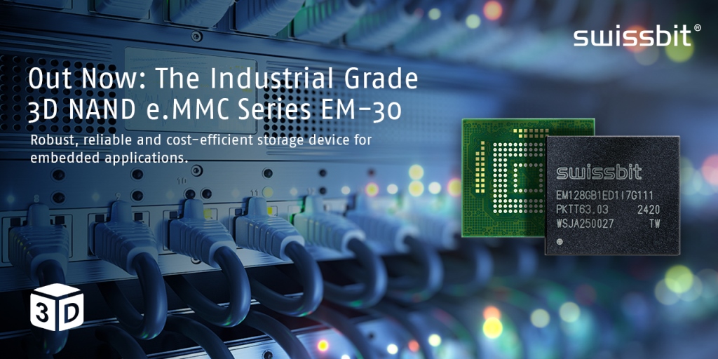Swissbit、組込みシステム向けにe.MMC-5.1規格準拠のインターフェースを搭載したBGAパッケージのNANDフラッシュストレージ製品「EM-30」を発表