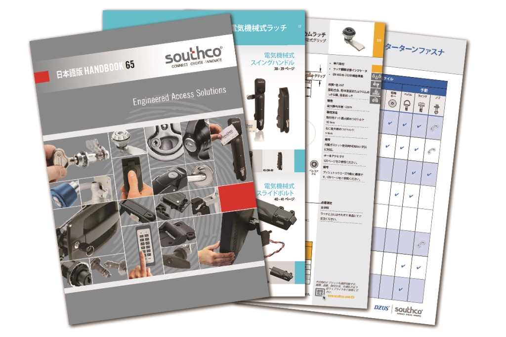 2017年1月31日 – ロック、ラッチ、ファスナ、ヒンジ、ポジショニングテクノロジーや電子ロックなど各種アクセスソリューションの世界的なリーディングサプライヤーであるSouthco, Inc.(サウスコ)は、最新の日本語版製品カタログ「サウスコハンドブック65」を発表しました。サウスコは70年以上に渡ってエンジニアリング・デザインの課題解決に向けたソリューションを提供する世界的なリーディング・カンパニーです。
