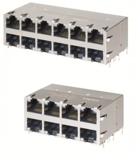 2014年10月27日 – 世界トップクラスのコネクターメーカーである米モレックス社の日本法人・日本モレックス合同会社(本社:神奈川県大和市、社長:梶 純一)は、同社マグネティックジャック製品の対応用途を拡大するため、マルチポートバージョンの「PoE+ ギガビット マルチポート マグネティックRJ45モジュール」を発表し、ラインナップを拡充した。このたび発表したRJ45モジュールは、12ポート(2×6)および8ポート(2×4)バージョンが取り揃えられ、高ポート数のギガビット対応スイッチやルーターをターゲットとし、ギガビットクラスのデータ供給とネットワーク接続機器へのPoE+ 30W電力供給が可能である。