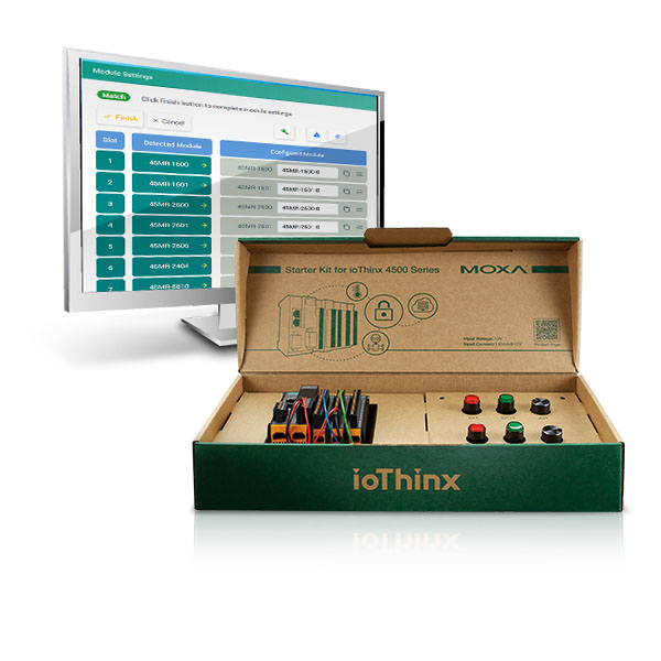 ioThinx IIoTスターターキットには、IT/OTクラウド・アプリケーションの設定とテストに必要なものがすべて揃っています。このキットにはIIoTリモートI/Oの基本製品であるioThinx 4510が1台と、IIoTアプリケーション用I/Oボード1枚が同梱されています。配線が不要なため、数回の簡単な手順でMQTTやRESTful API、SNMP、Modbusによる接続の設定が可能です。