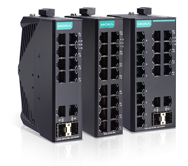 台北(台湾)、2020年4月15日 – 産業用通信およびネットワーキングのリーディング・カンパニーであるMoxaは、産業用アンマネージド・イーサネット・スイッチの新しいラインナップとして「EDS-2000-EL」および「EDS-2000-ML」シリーズを発表しました。新発売の産業用アンマネージド・イーサネット・スイッチには、より多くのノードをより高い帯域幅で安定的に接続するため、5~18のポート数やギガビット・コンボ・ポートといったオプションが用意されています。またQuality of Service(QoS)やブロードキャスト・ストーム・プロテクション(BSP)といった機能をDIPスイッチで制御可能で、現場エンジニアによる、高信頼性ネットワークの容易な拡張を支援します。