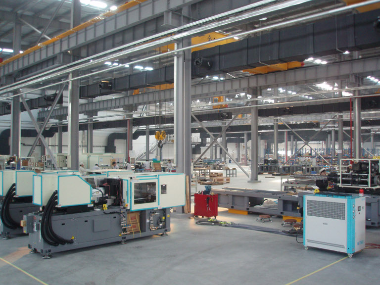 日精樹脂では、完成した太倉新工場に射出成形機の製造を集約し、これまでの型締力50トン~180トンに加え、220トン~360トンの中型クラスまで拡大した電気式射出成形機(NEX-ⅢTシリーズ)7機種の完成品および半製品を含むユニット(型締機構等)の他、射出高速仕様機(NEX-ⅢT-ENシリーズ)3機種を併せ計10機種の生産を行います。また、簡単な加工部品の製造や中国の加工部品の調整等を行うことで、生産・加工コストの引き下げを図ります。
