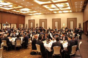 第2部の記念パーティーでは、まずは当社役員を紹介し、ご来賓の小野勝彦氏(信濃化学工業株式会社代表取締役社長、長野県プラスチック工業会会長)のご発声による乾杯で祝宴がスタートとなりました。信州産の食材を用いたコースメニューを味わっていただきながら、和やかなムードでご歓談いただいた後、同じくご来賓の西田不折氏(西田技研工業株式会社取締役会長、当社取引先持株会理事長)の締めのご挨拶により、閉会となりました。