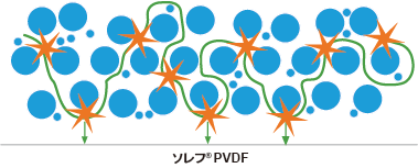 また、ソレフ® 5140は活物質粒子や導電剤との間で非常に優れた結着性も備えているため、これまでより少ないバインダー添加量でも長い寿命が確保されるほか、高いエネルギー密度が得られます。フッ素樹脂鎖に分布する極性官能基により、内部抵抗も小さくなっています。バインダーの優れた耐薬品性により、有機カーボネートやリチウム塩が含まれるLiイオン電池の過酷な環境でも長期安定性が確保されます。この新しいバインダーグレードは、定評のあるソルベイの正極および負極用ソレフ® 5130およびソレフ® 5120 PVDFバインダーの既存製品群を拡充するものです。
