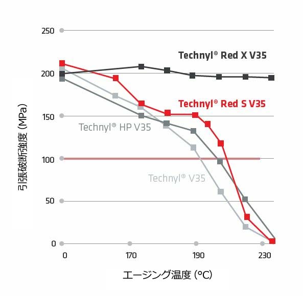 Technyl®Red Sは、熱老化後も優れた強度を発揮します。