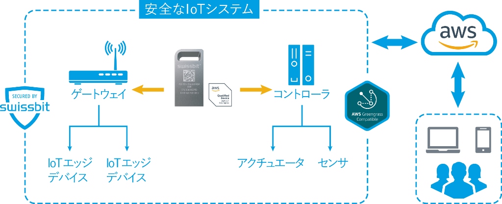 Swissbit_AWS IoT Greengrass用のハードウェアセキュリティモジュールを発表_図一般的にIoTデバイスを保護する暗号鍵はソフトウェアによって保管されていますが、この方法は知識豊富なハッカーによって秘密鍵の偶発的な開示や意図的な盗難の影響を受ける可能性があります。Swissbitはこうしたソフトウェアの潜在的な脆弱性を克服するため、標準のUSBインターフェイスの採用によって広範なデバイスに適用できる、後付け可能なハードウェアセキュリティモジュール、iShield HSMを提供します。iShield HSMは、オープンソースのエッジランタイムおよびクラウドサービスであるAWS IoT Greengrassは、iShield HSMと互換性があるため、既製のハードウェア設計や既に使用されているデバイスに最適です。デバイスの秘密鍵と証明書は改ざん防止機能を備えたハードウェアセキュリティモジュールに格納されるため、ソフトウェアによるコピー、抽出、アクセスはできません。