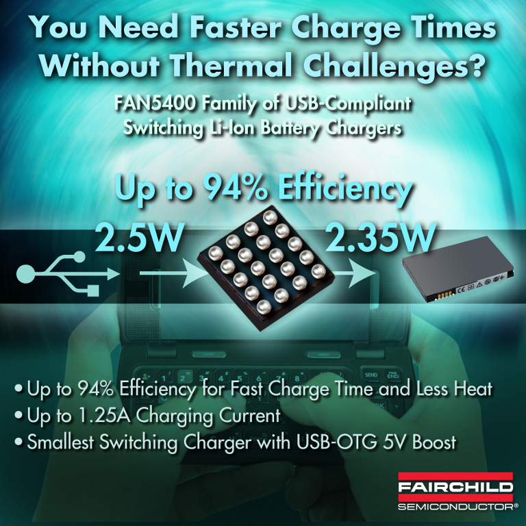 フェアチャイルド セミコンダクター 発熱量を抑え、短時間充電を可能にする USB規格準拠、リチウム・イオン充電池向け、スイッチング・チャージャを発表 Author 東京PR Date 2010-11-25 USB-OTG向け昇圧機能を持つ最小サイズのスイッチング・チャージャ 2010年11月25日 – フェアチャイルドセミコンダクタージャパン㈱(本社:東京都渋谷区、社長:朴贊九)は、USB規格準拠、リチウム・イ